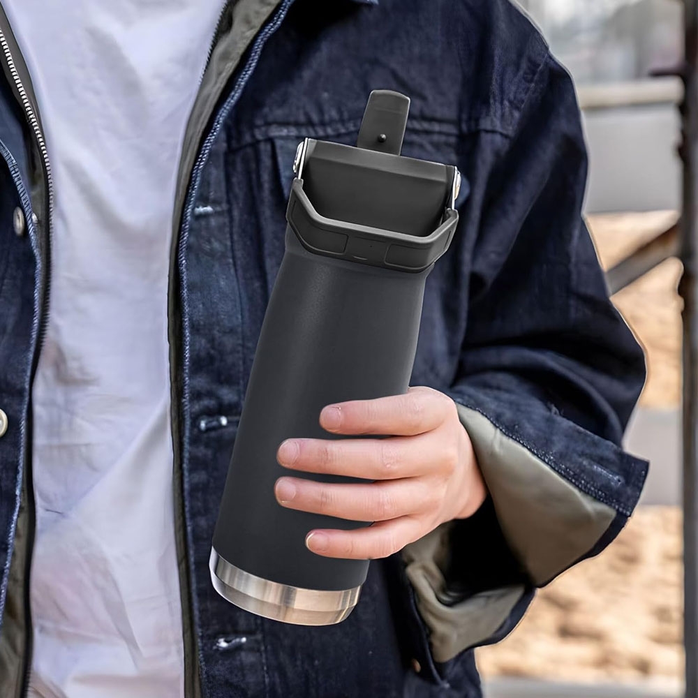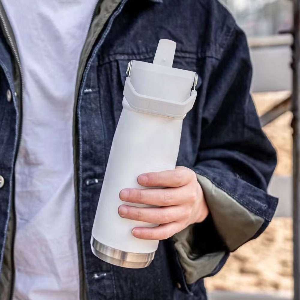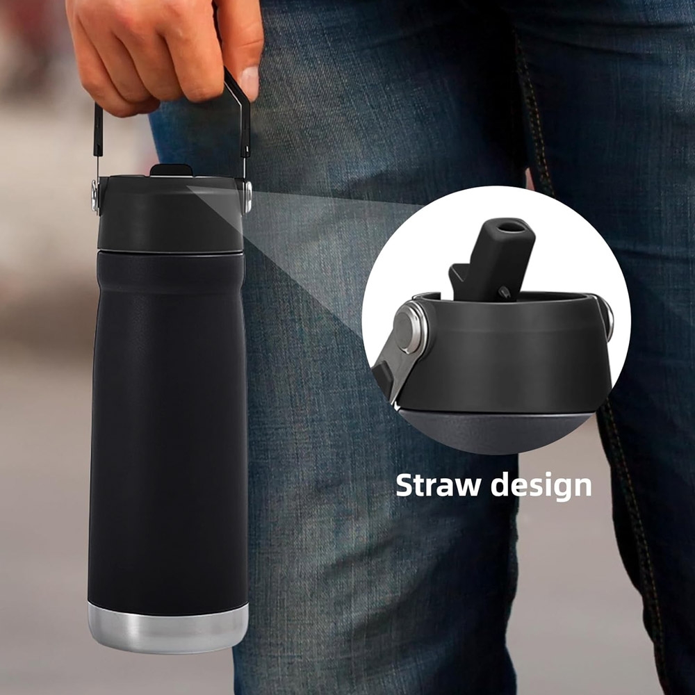 Tumbler termos botol minum tahan panas dingin ES batu 650 ml T083 dengan pegangan tutup model sedotan praktis mudah dibawa SUS304