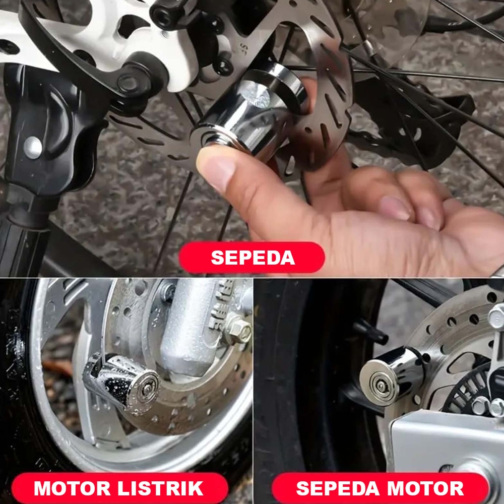 Gembok Round Cylinder untuk Cakram Motor warna Silver KL905 dengan 2 Anak Kunci gembok sepeda listrik gembok motor listrik ekstra aman