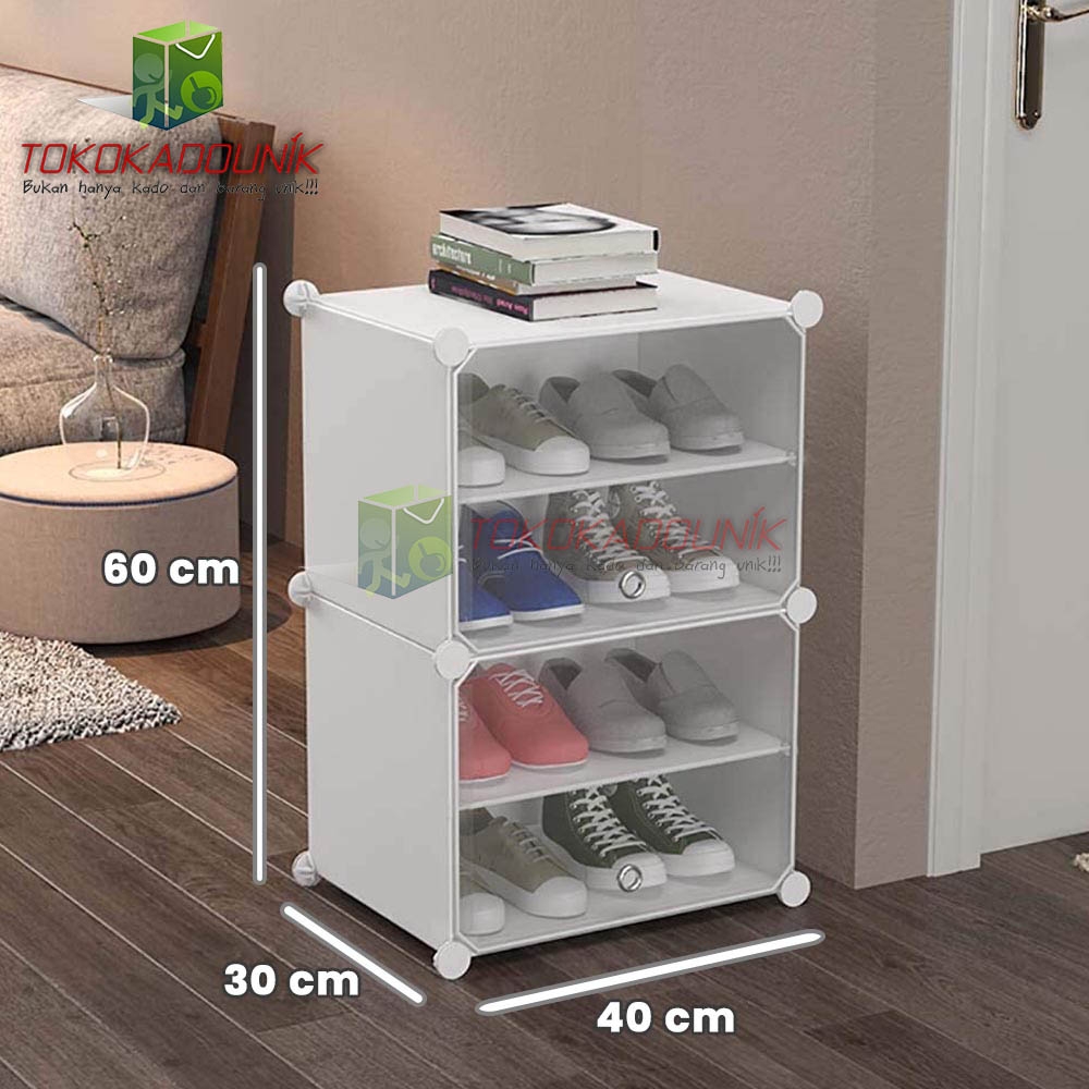 rak sepatu 4 susun plastik besi / rak sebaguna DIY 2PT minimalis transparan - tahan lama, muat 8 pasang sepatu / sendal