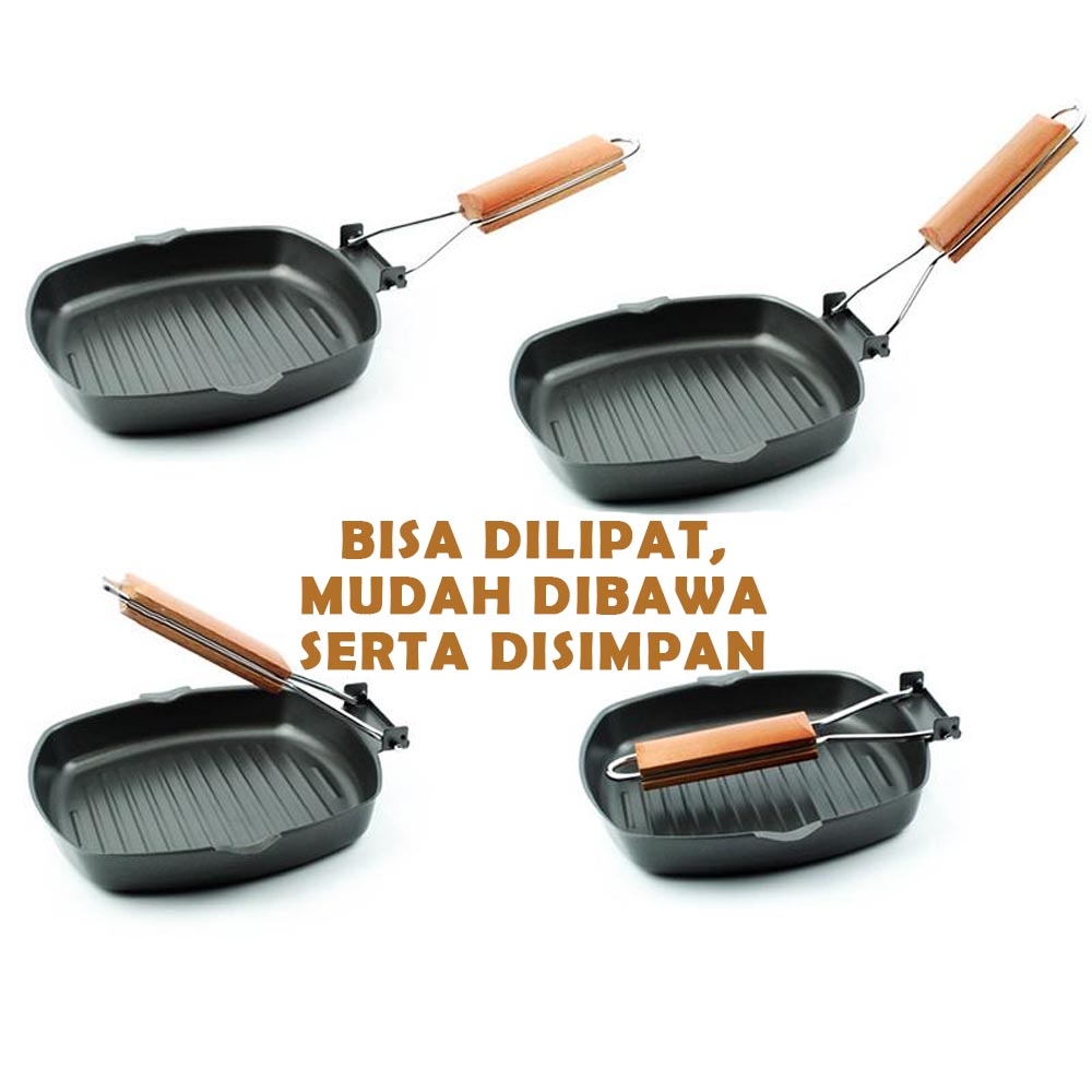 Panci lipat Anti Lengket dilengkapi dengan pegangan kayu dan bobot yang pas