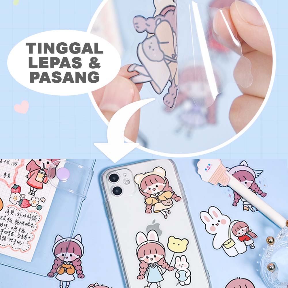 Stiker Kartun Aesthetic Lucu Transparant tinggal dilepas lalu di tempel aja