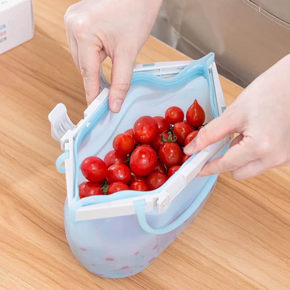 Reusable Silicone Bags Z7 Food Storage Freezer Bag Kantong Silikon Tempat Makanan fresh - tempat serbaguna Kedap Udara system klip 1L