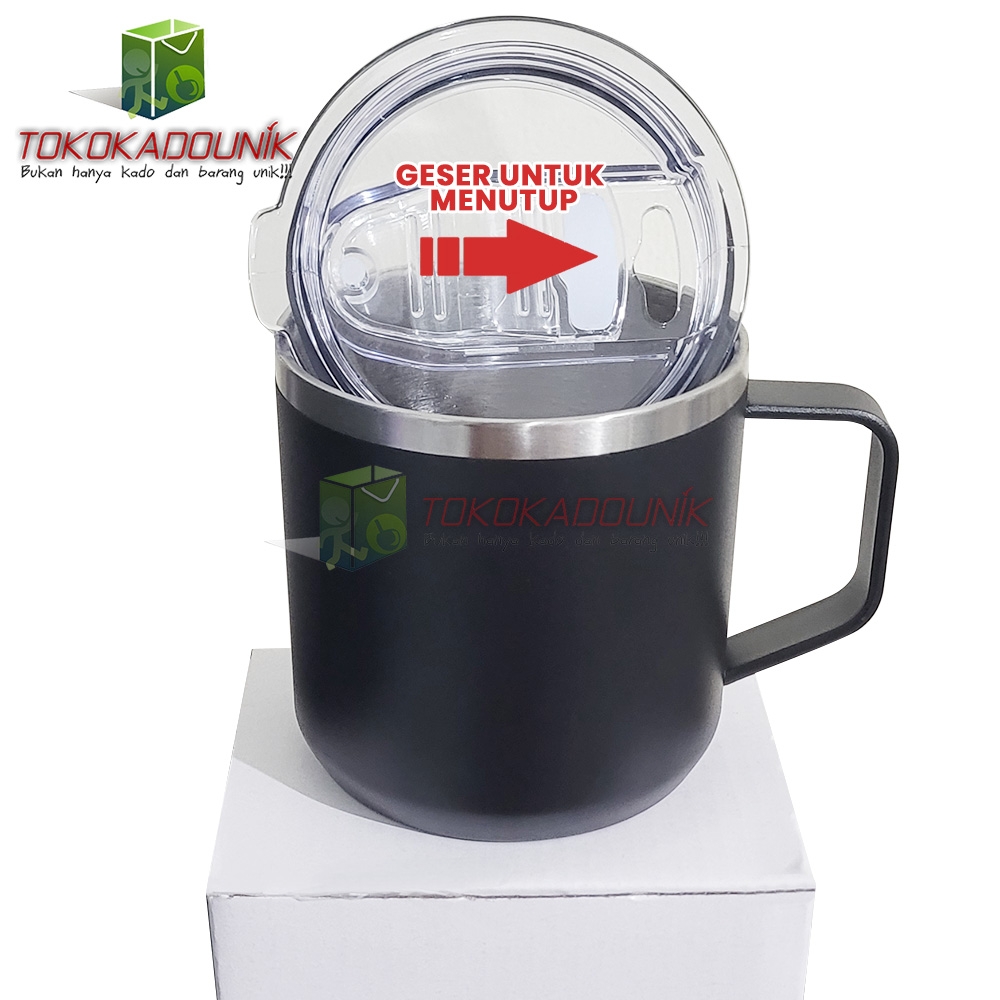 tutup, cukup geser saat ingin minum. Mug ini cocok untuk minum berbagai minuman favorit