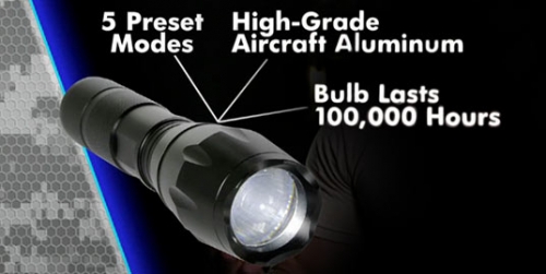 Ini fitur lima mode dengan strobe taktis untuk membantu mencegah penyusup, lumens super-bright 600 yang terlihat selama lima mil laut, pegangan yang memperluas cahaya terkonsentrasi atau kontrak untuk cahaya menyebar, ditambah bohlam berlangsung 100.000 jam!