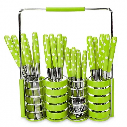 Sendok Set Motif Polkadot juga dilengkapi rak stainless untuk menempatkan masing2 sendok dan garpu, ruang makan jadi lebih rapih dan indah dengan hadirnya sendok ini.